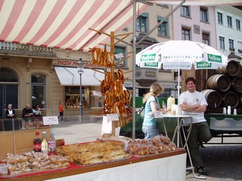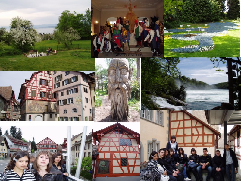 - 5° jour : Journée en Suisse : remontée du Rhin (en car) jusqu'à Stein am Rhein, village fortifié aux mainons magnifiquement peintes, pique-nique dans le donjon du château de Schaffhausen sur la route du sel, puis chute du Rhin, unique en Europe.